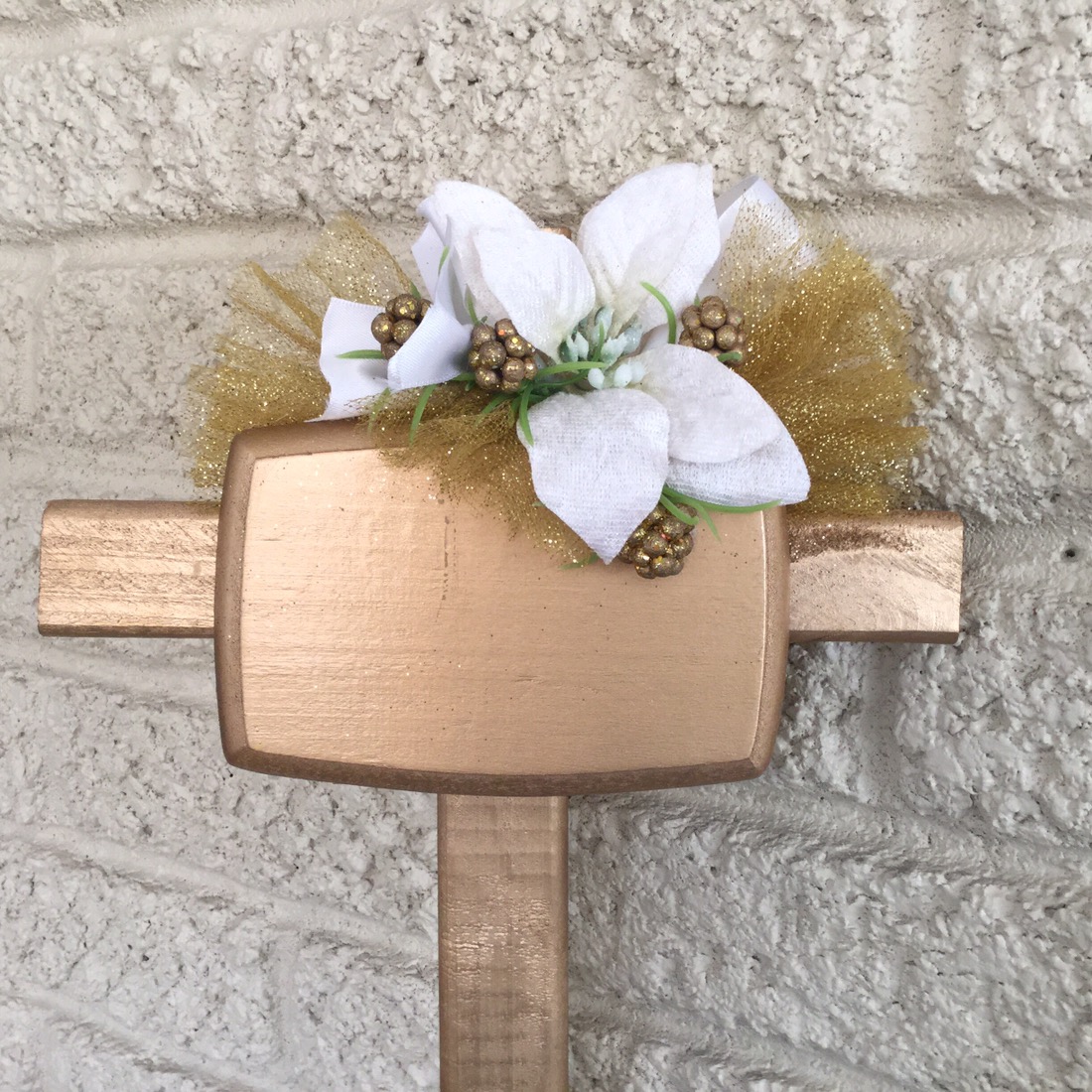 The crosses with the plaques attached to the front can be personalized with a name at no additional charge.